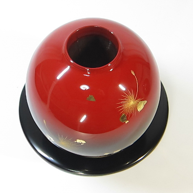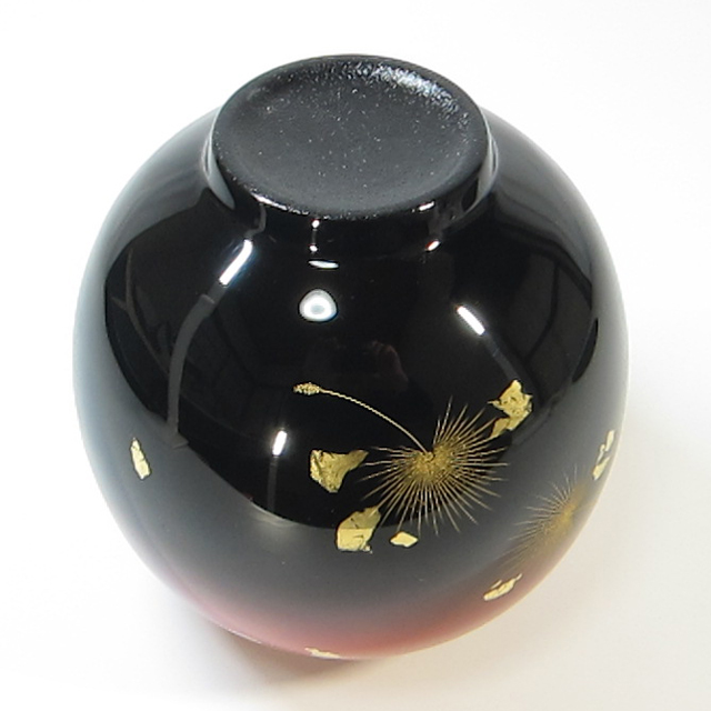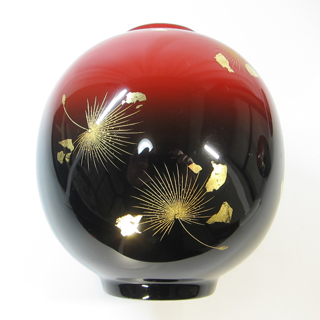 輪島塗花器 球型 【手彫り沈金 飛花】-サンバースト仕様-