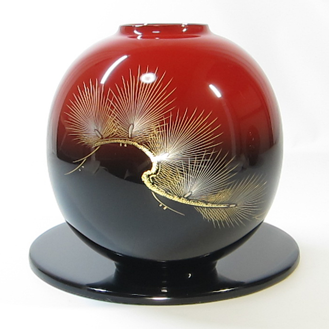 輪島塗花器 球型 【手彫り沈金 松】-サンバースト仕様-