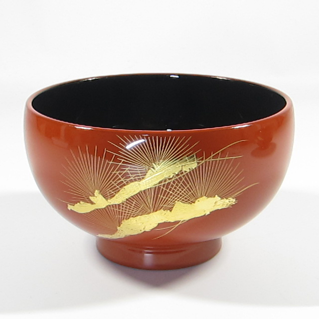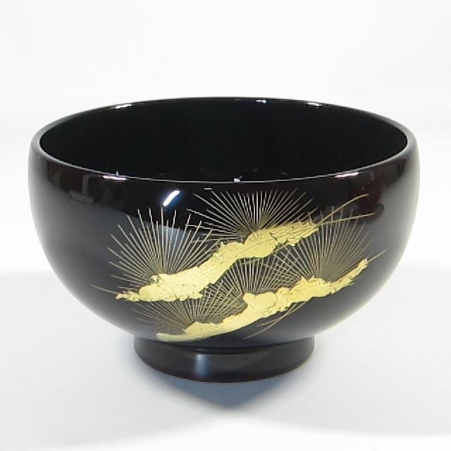 輪島塗 汁椀 【手彫り沈金 寿松】-溜-【桐箱入り】