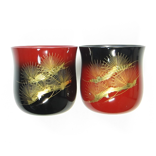 輪島塗 ペアギフト椀 【手彫り沈金 寿松】サンバースト仕様 桐箱入